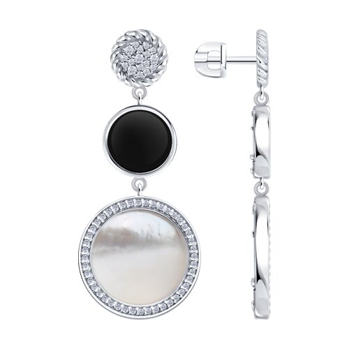 Серьги из серебра с агатом,пеламутром и фианитами 152903