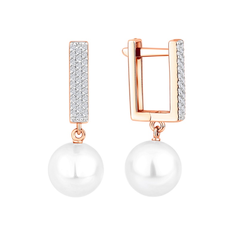 Серьги из красного золота с жемчугом и фианитами