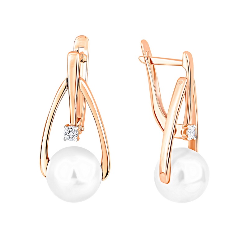 [NAME] => Серьги из красного золота с жемчугом и фианитами