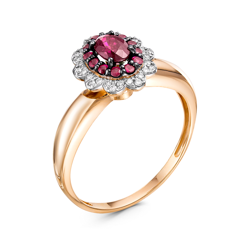 Кольцо из красного золота с рубином и бриллиантами