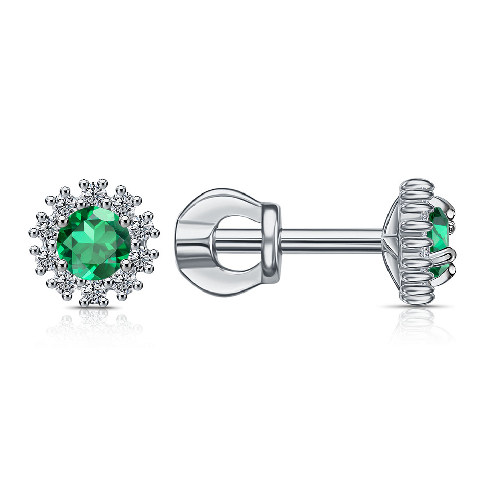 Серьги из белого золота с изумрудами и бриллиантами 153586