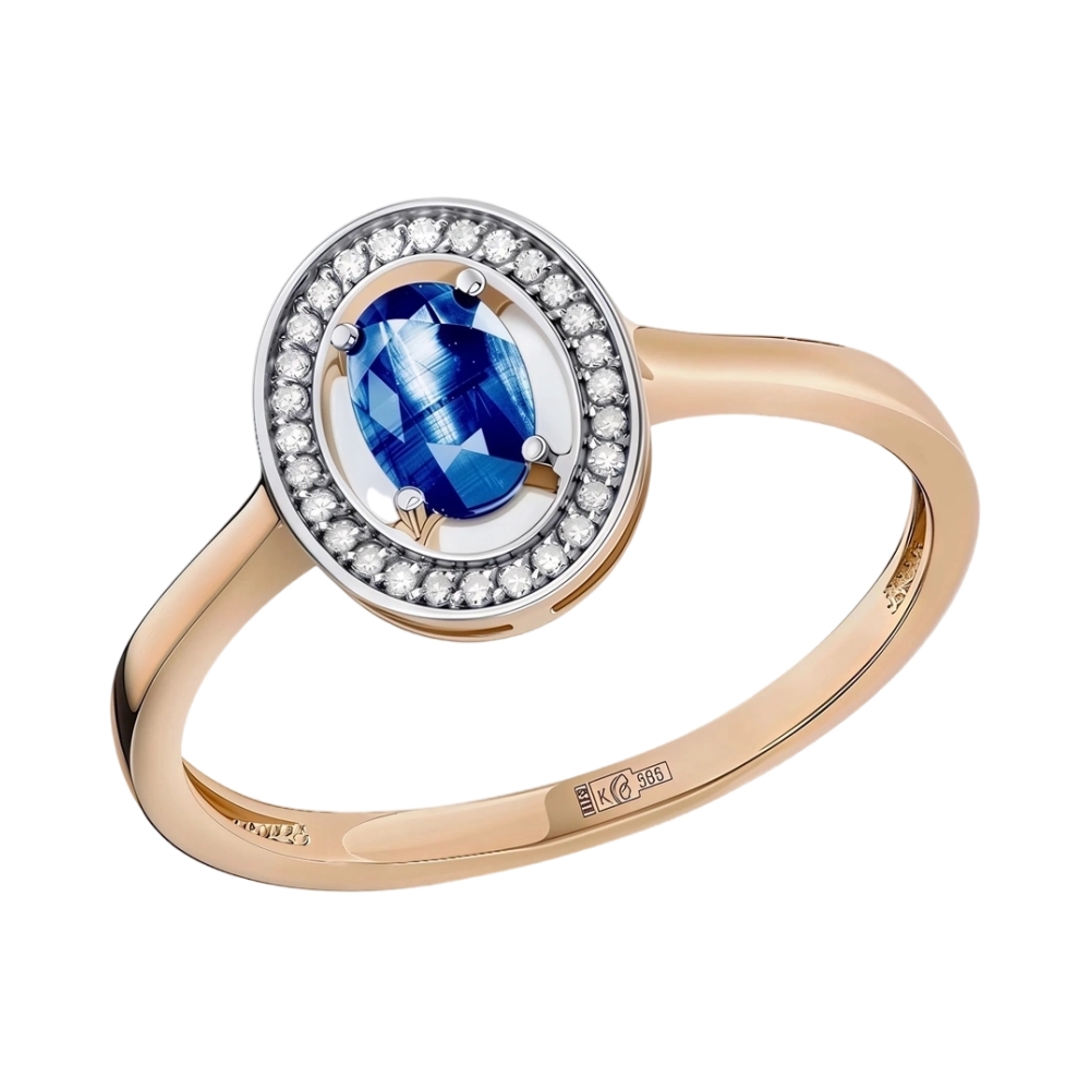 Кольцо из красного золота с сапфиром и бриллиантами 153662