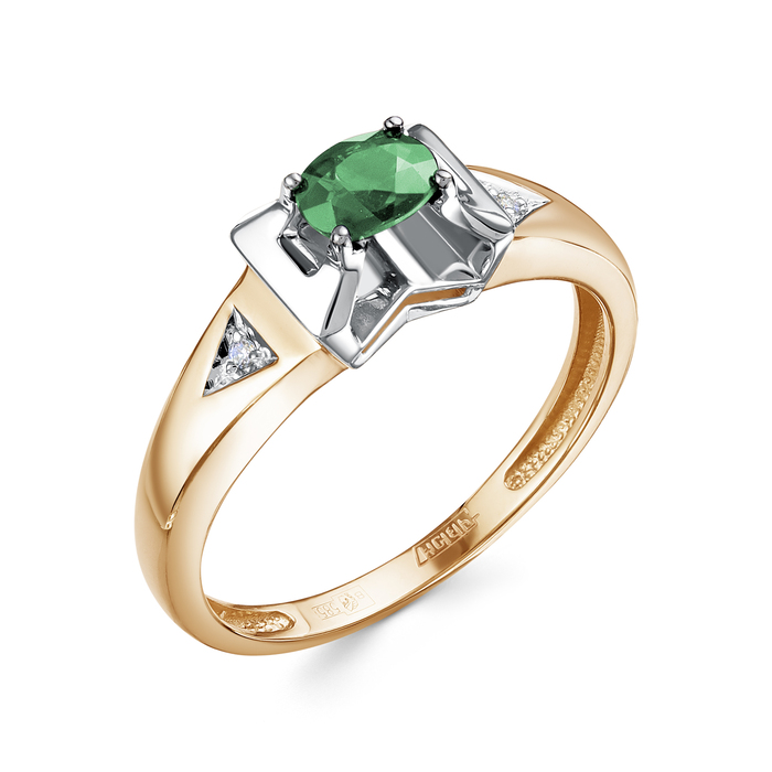 Кольцо из красного золота с изумрудом и бриллиантами 153713