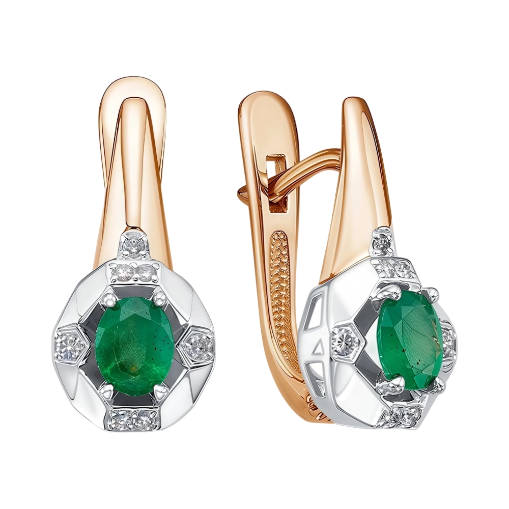 Серьги из красного золота с изумрудами и бриллиантами