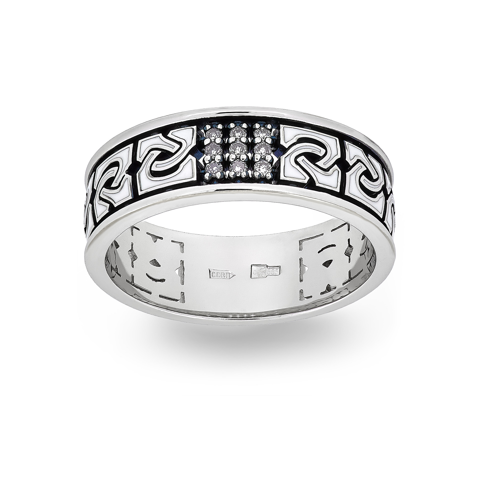 Обручальное кольцо из белого золота с бриллиантом и эмалью
