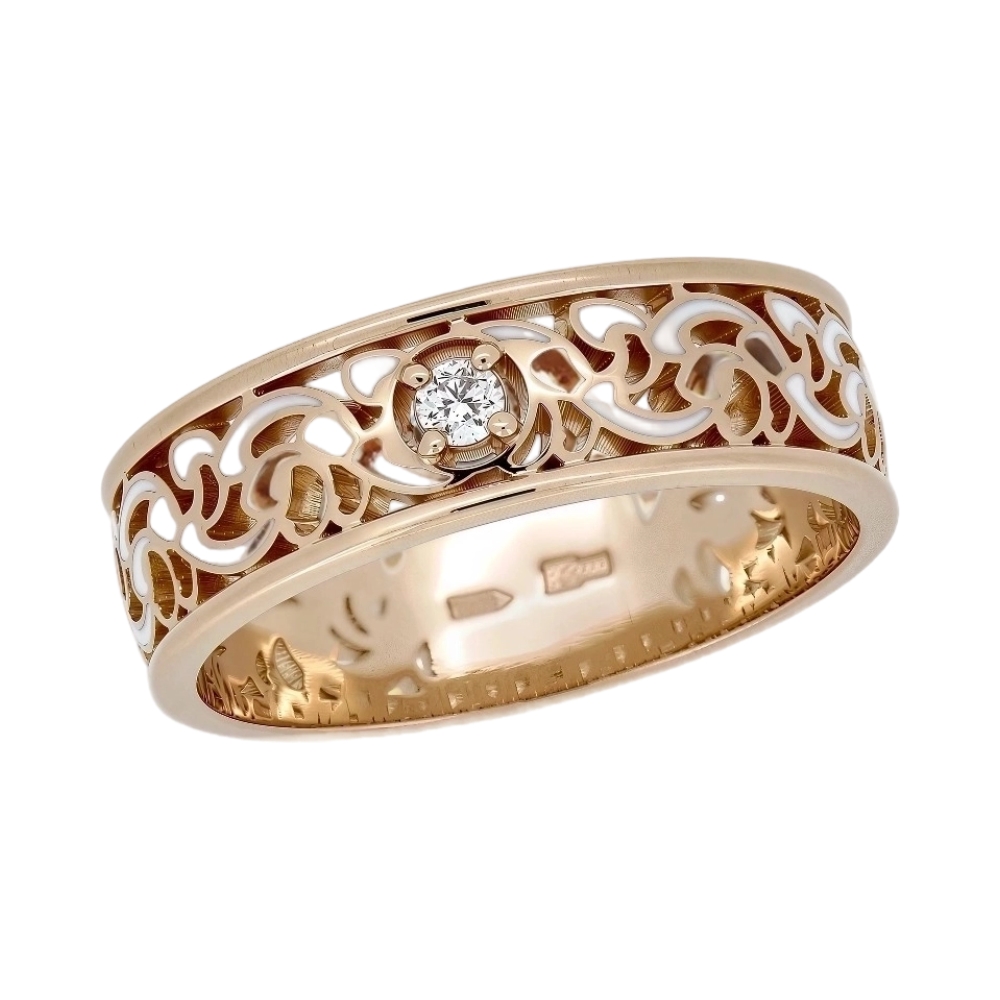 Обручальное кольцо из красного золота с бриллиантом и эмалью