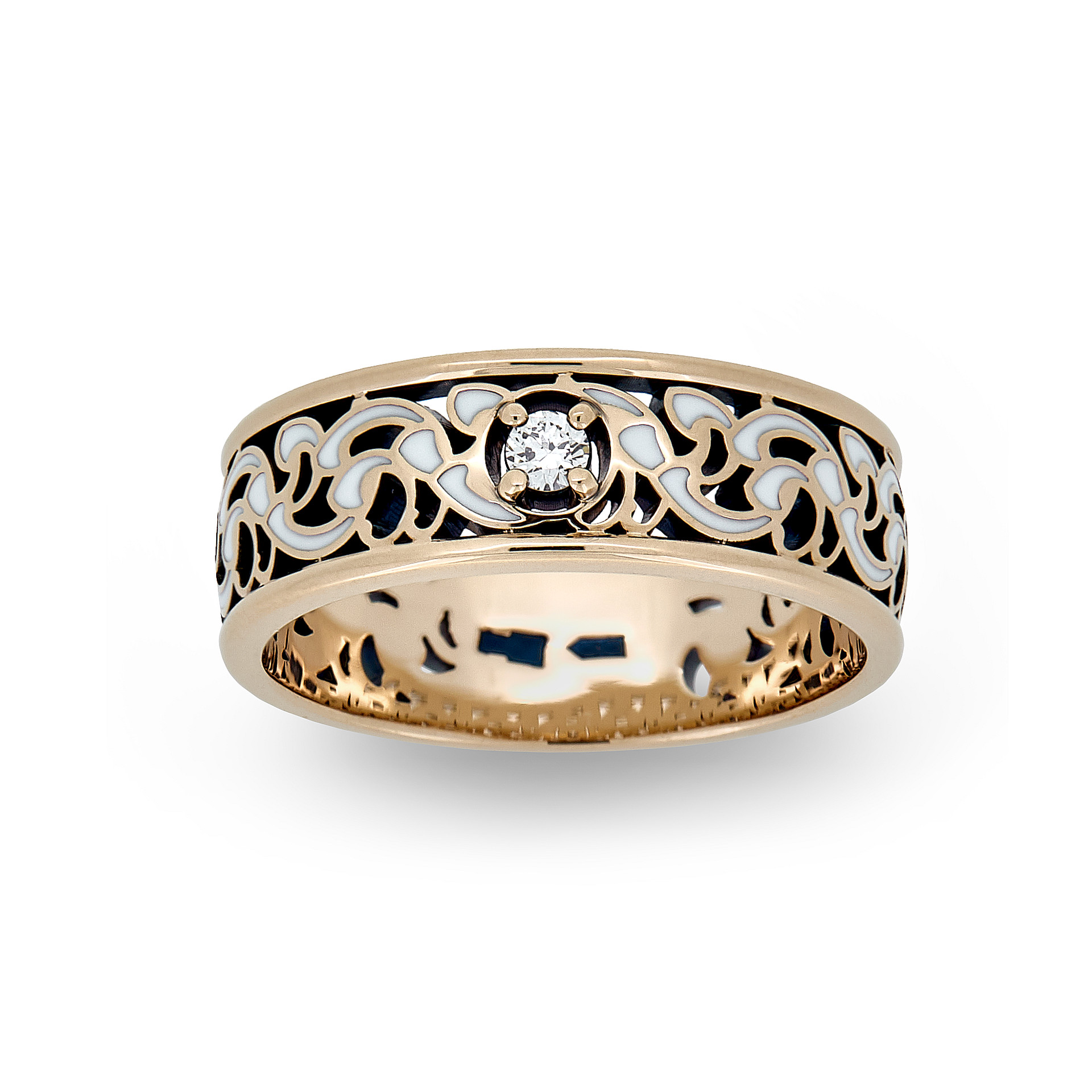 Обручальное кольцо из красного золота с бриллиантом и эмалью