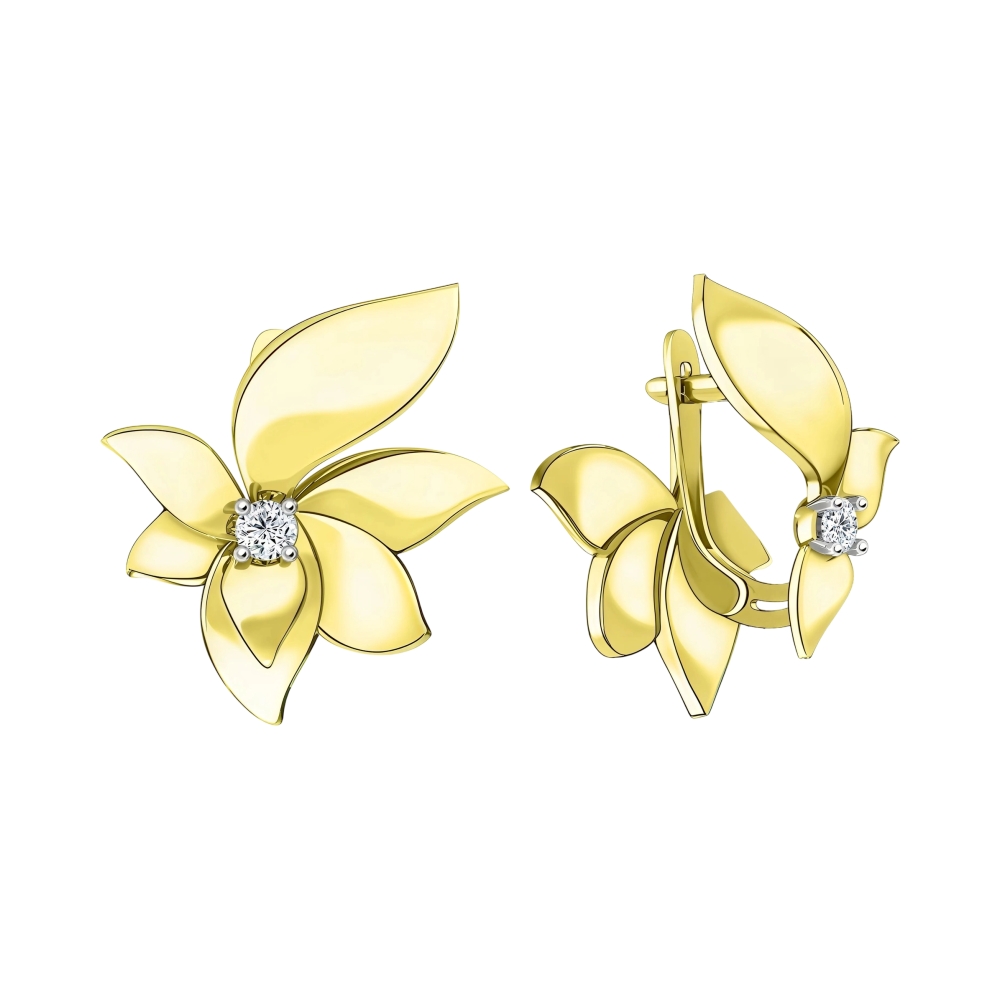 Серьги из желтого золота с фианитами