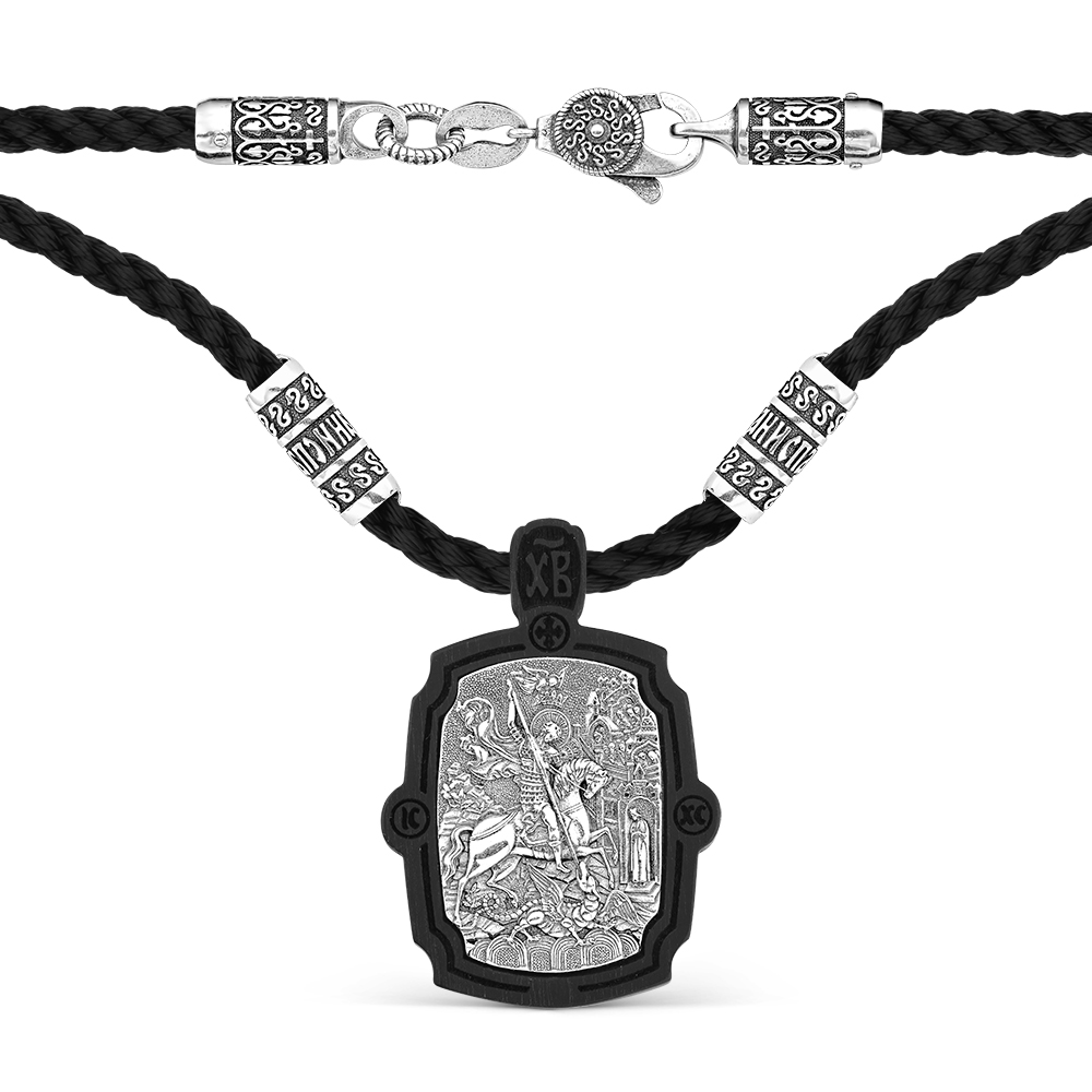 Шнур с подвеской из серебра и дерево Граб
