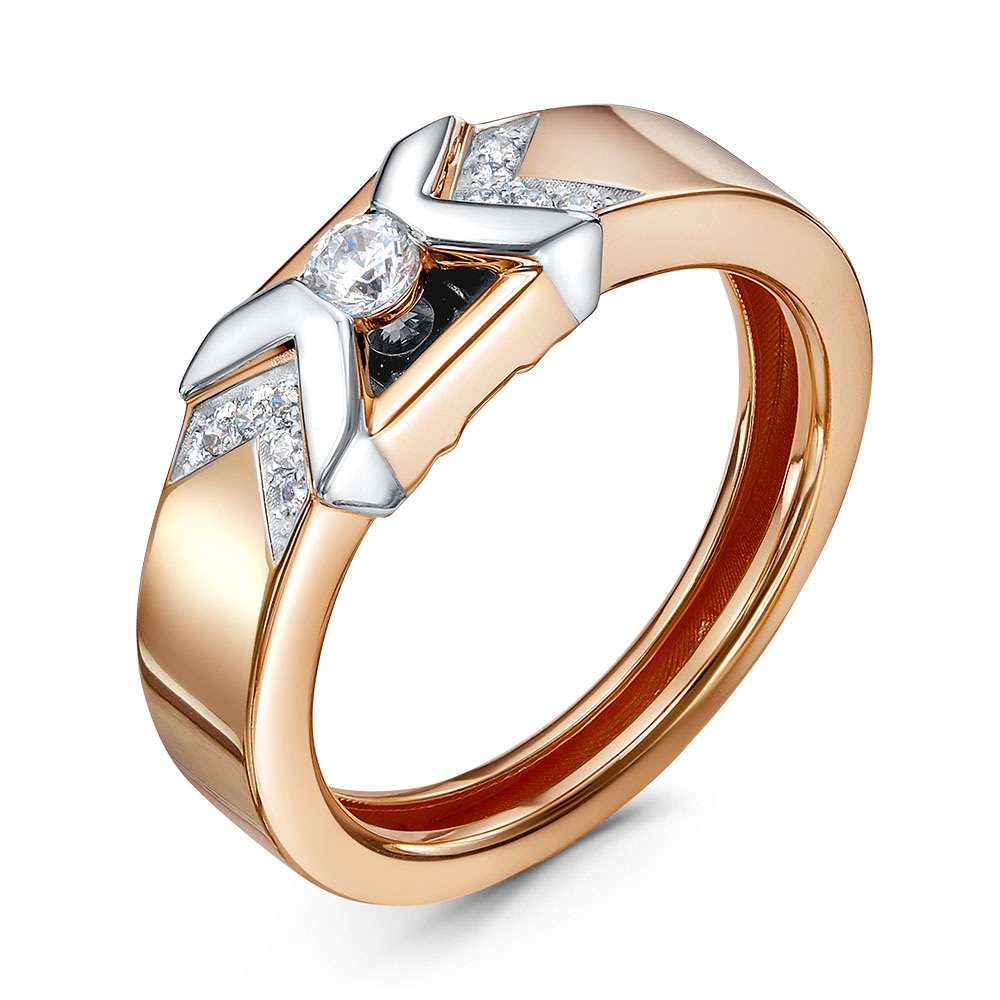 Кольцо из красного золота с бриллианитом, ониксом и фианитами