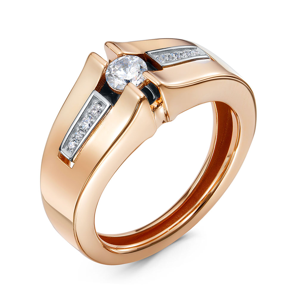 Кольцо из красного золота с бриллианитом, ониксом и фианитами
