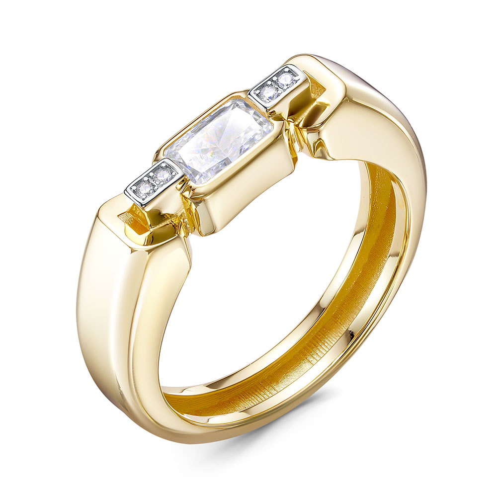 Кольцо из желтого золота с бриллианитом и фианитами 157812